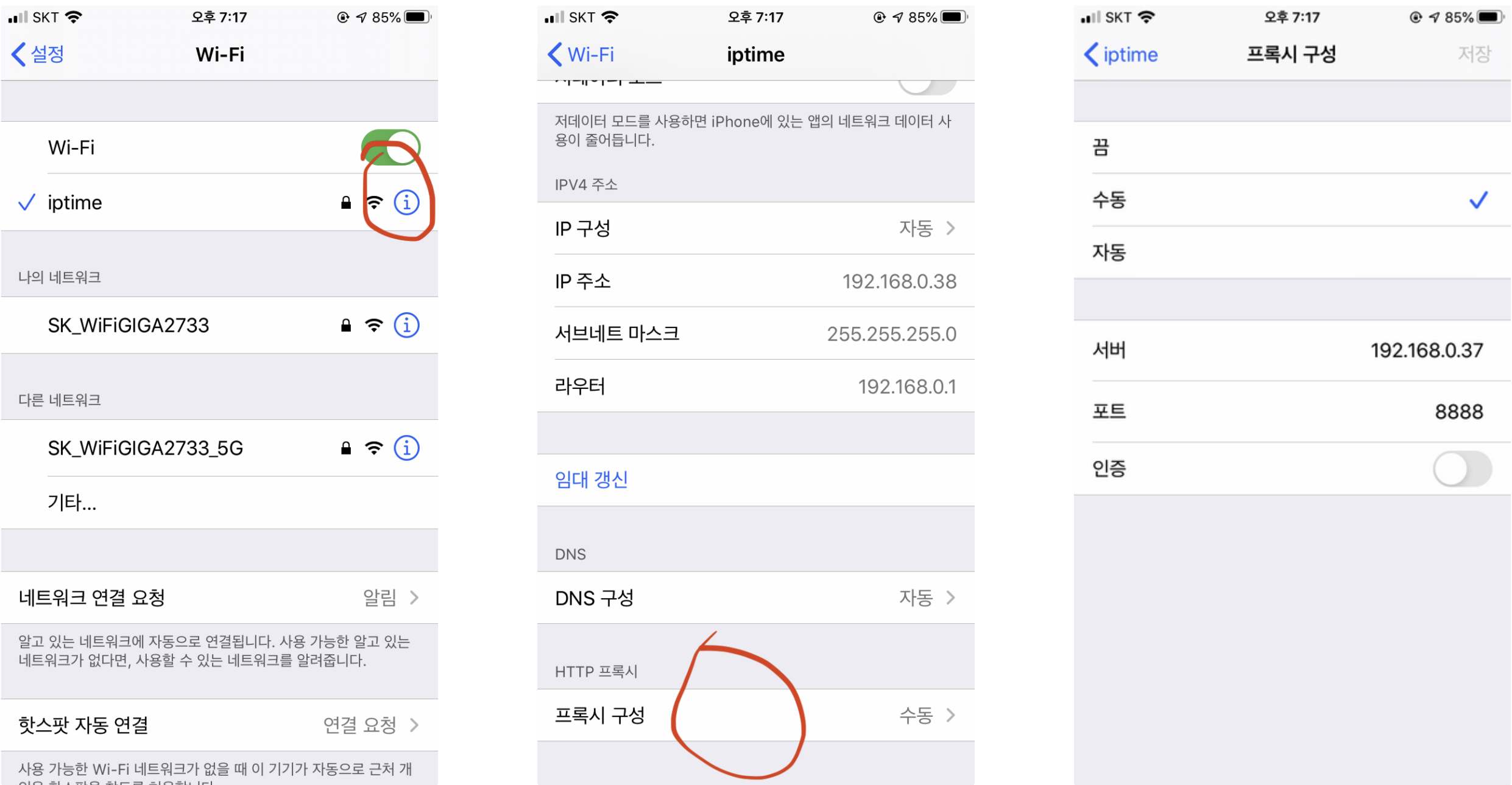 컴퓨터와 iOS 기기가 같은 네트워크에 있어야 한다. Charles에서 Help > Local Ip Address를 클릭해 private 주소를 확인하고 입력한다.